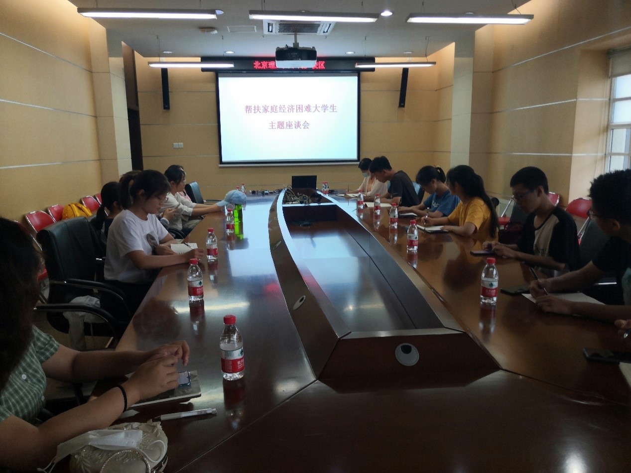 2020年9月11号13点,学生事务中心郝晓玲副主任、资助中心付璠老师以及新长城北理自强社第十七届学生骨干成员在行政楼123会议室举行了以“帮扶家庭经济困难大学生”为主题的座谈会。座谈会上,自强社全体骨干各抒己见,积极表达了对座谈会主题的看法和见解,讨论热烈。